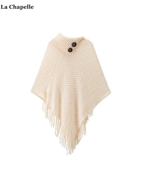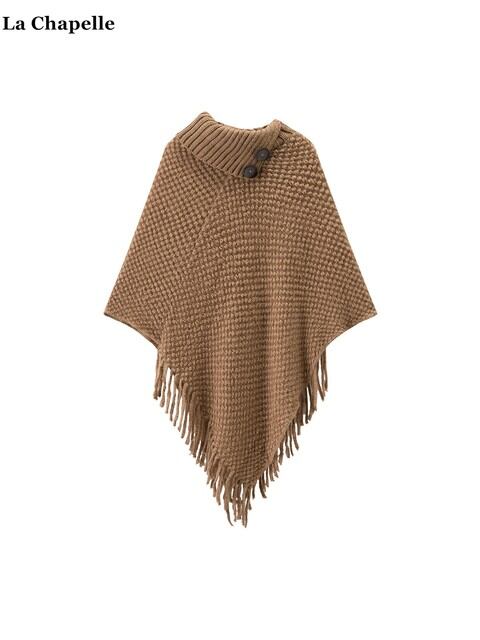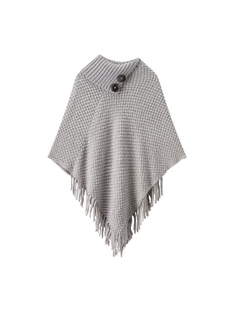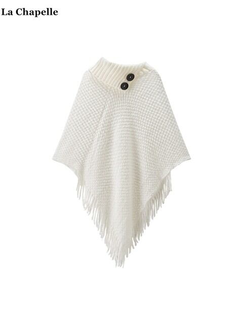 新作タッセルケープニットセーター(レディース)、ハイネックボタンダウンセーターショール ポンチョ