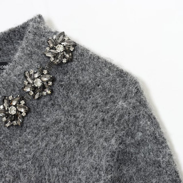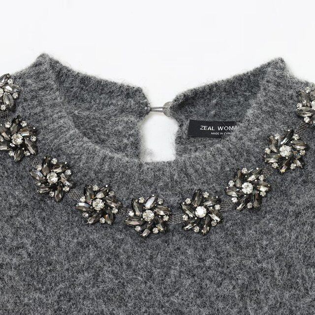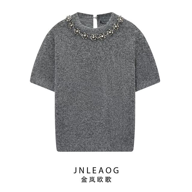 JNLEAOG 秋冬新作 レディース 欧米風 ラウンドネック ジュエリービーズ 半袖 ニットトップス 3920873