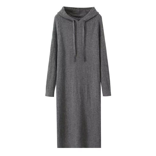 ヨーロッパ アメリカスタイル フレンチデザイン ファッショナブルで万能なフード付き プルオーバーセータードレス