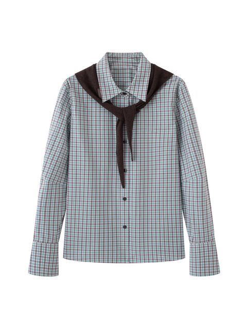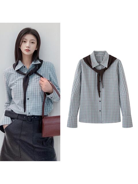 新作 ピースボーダーライン レディース ファッショナブルで万能なカジュアルショールチェックシャツトップス