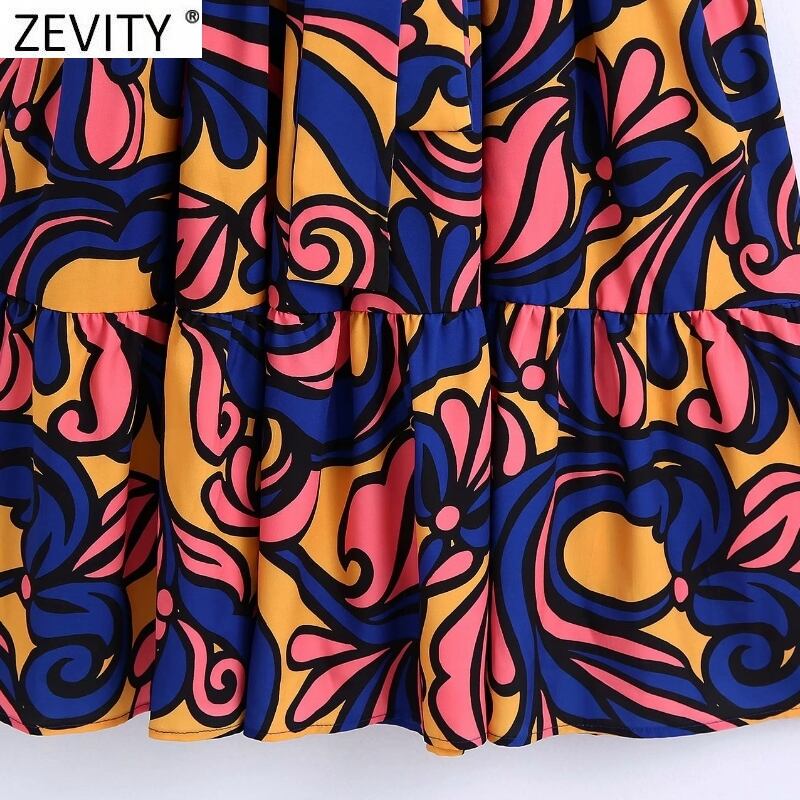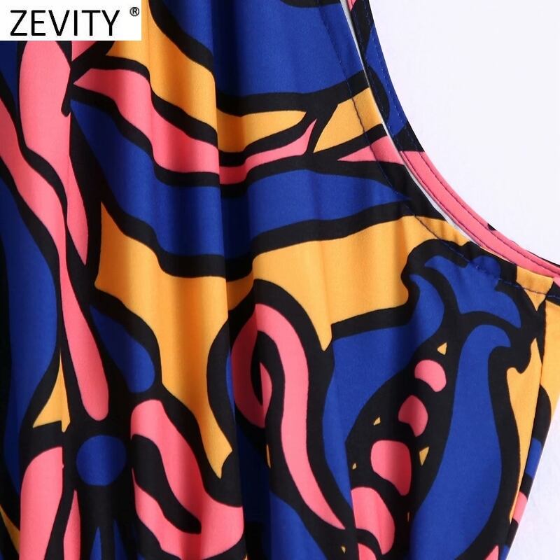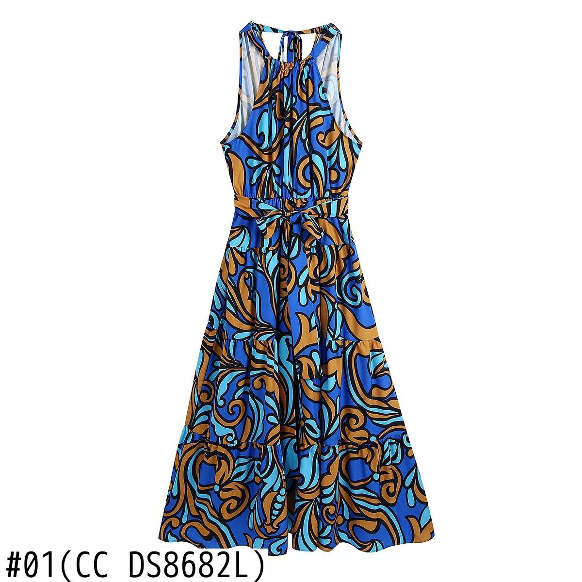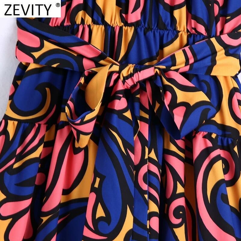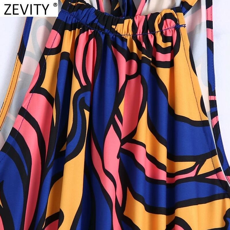 Zevity WomenVintageノースリーブコントラストカラーグラフィティプリントホルターミディドレスシックなボウサッシュスリム Amy50313552803