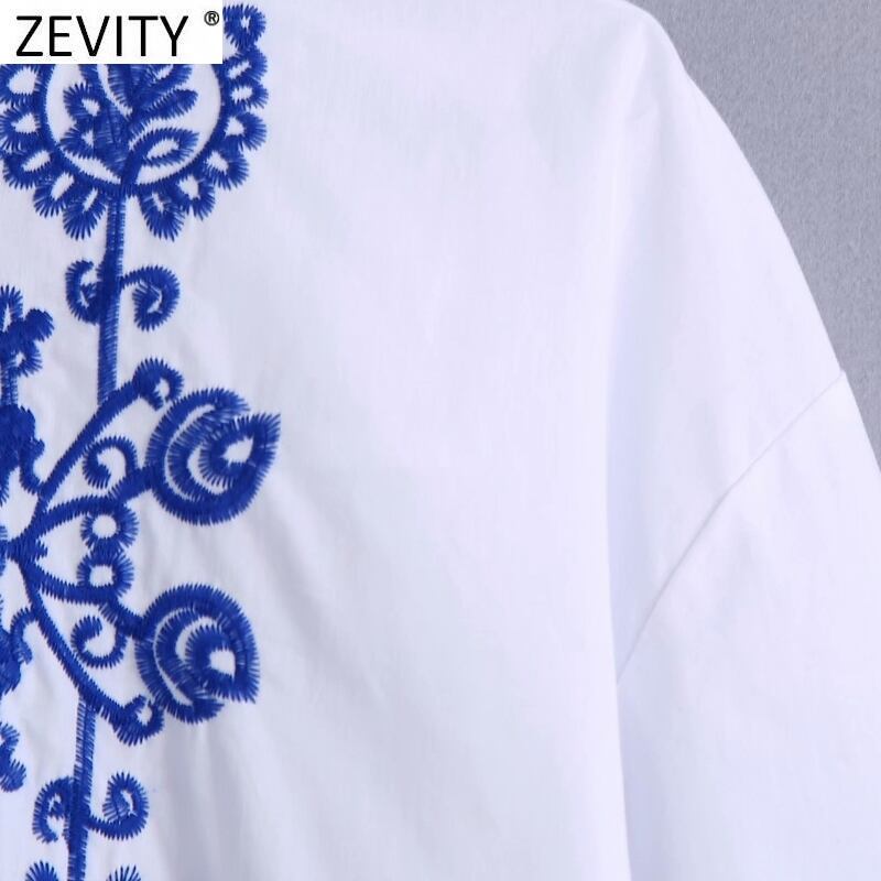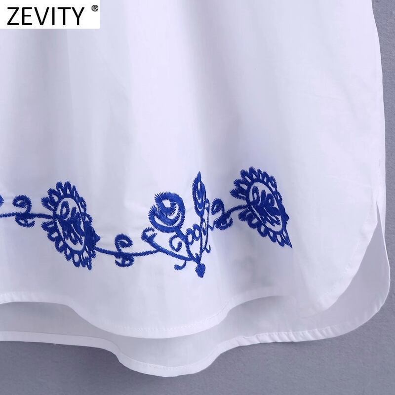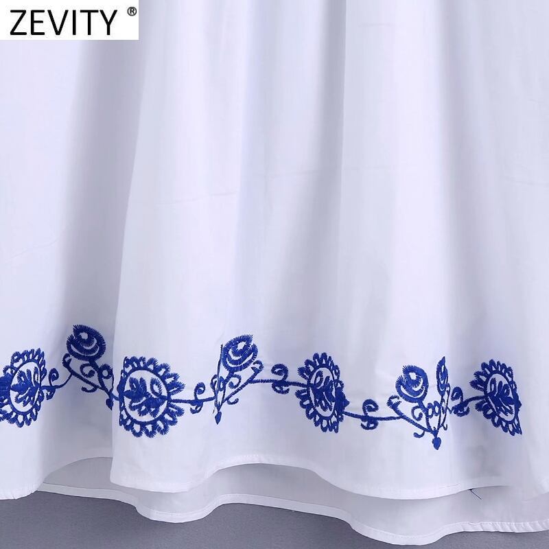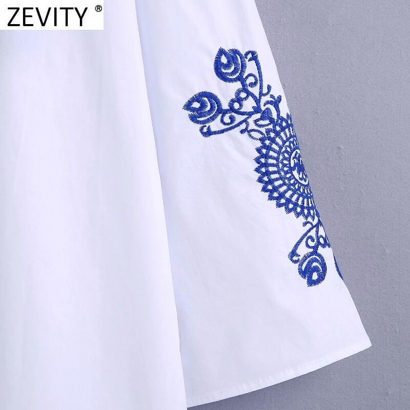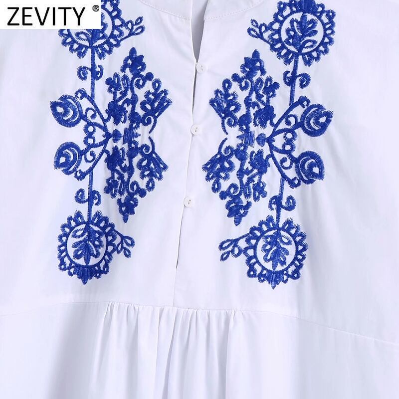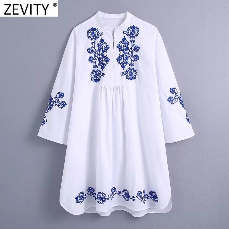 女性スタンドカラートーテム花刺繡ホワイトミニドレスシックスリークォータースリーブ 刺繍 トートバッグ 花柄