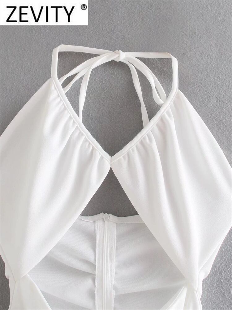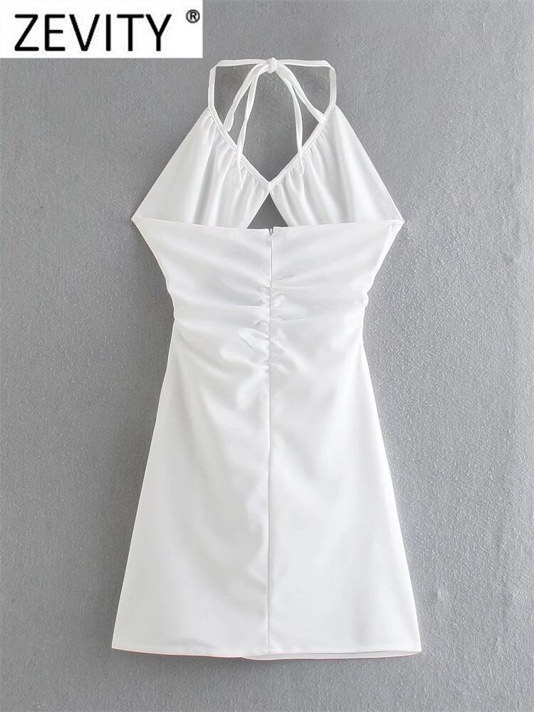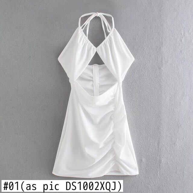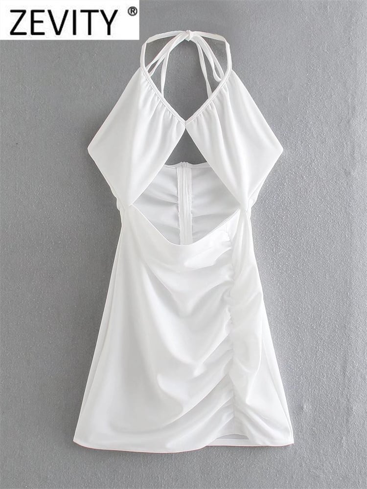 女性セクシーカットオフホローアウトホワイトホルタードレスシックな夏の背中の開いたジッパープリーツパーティー サマー 夏物