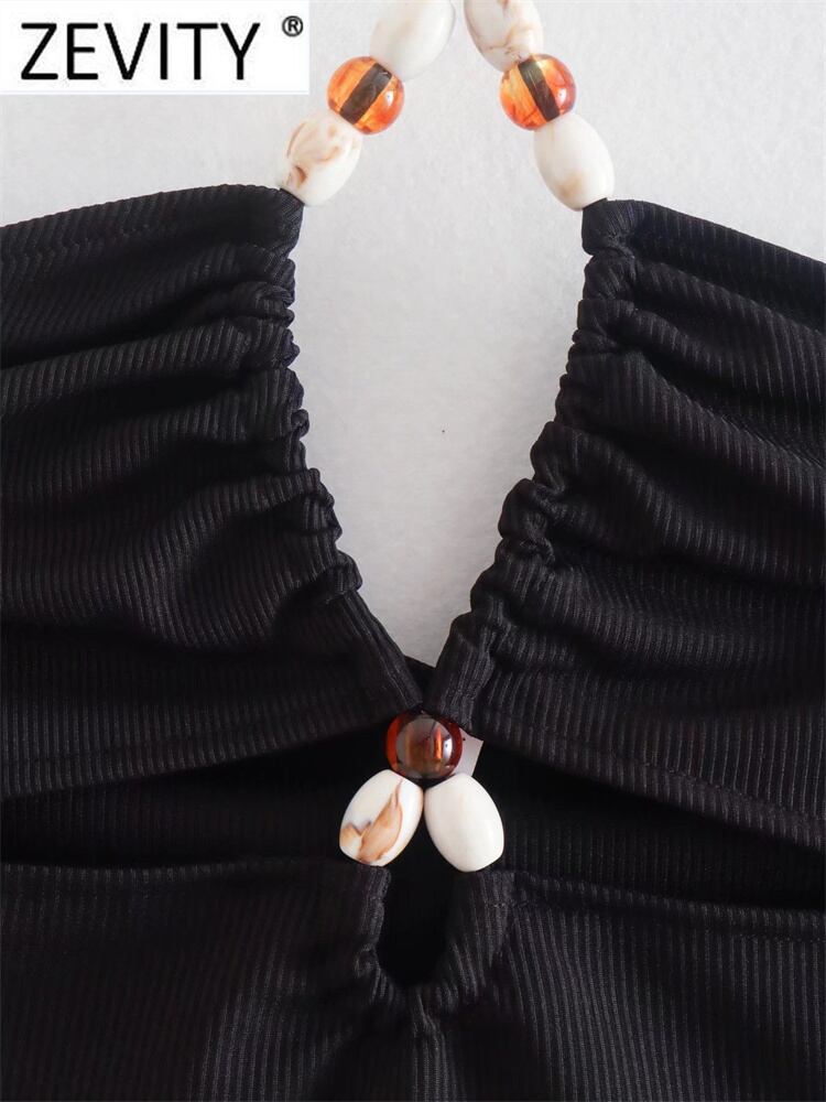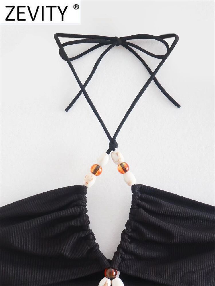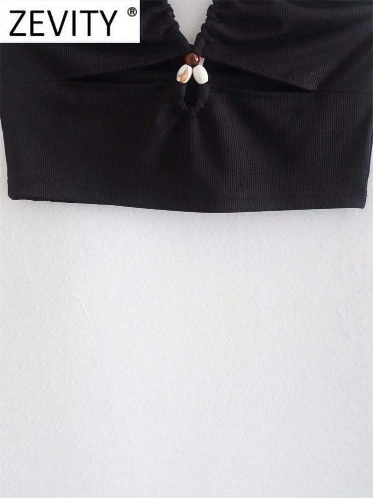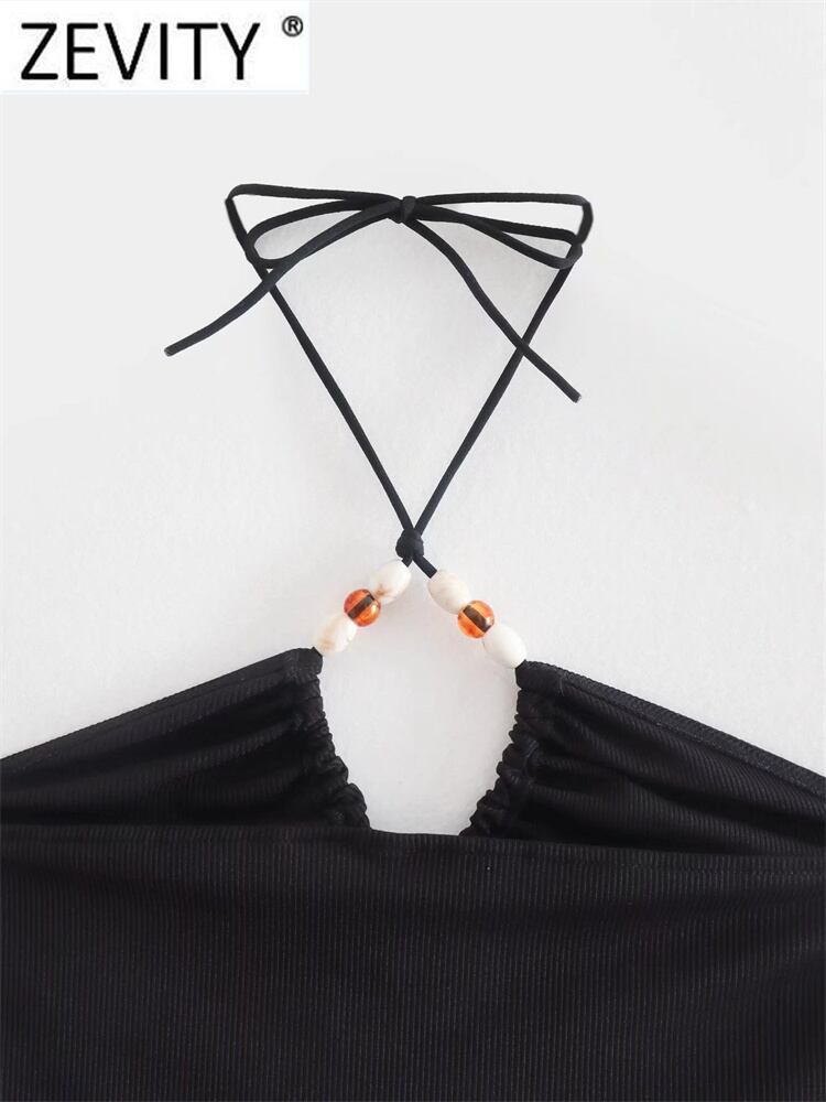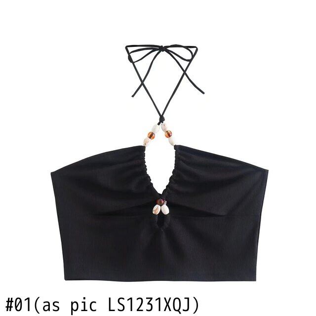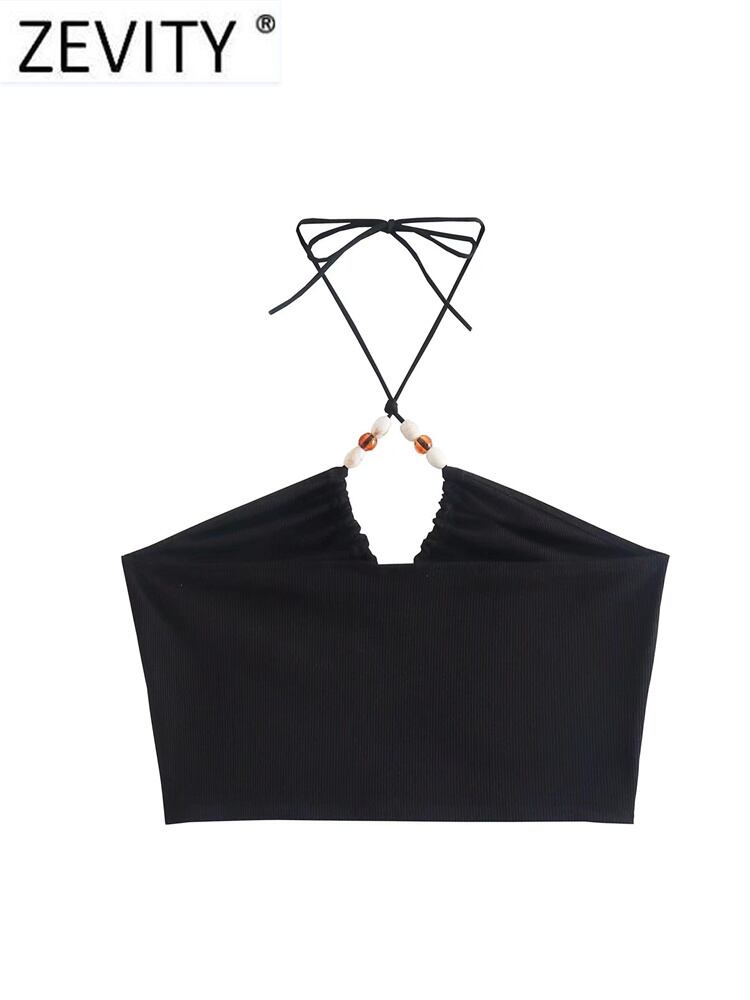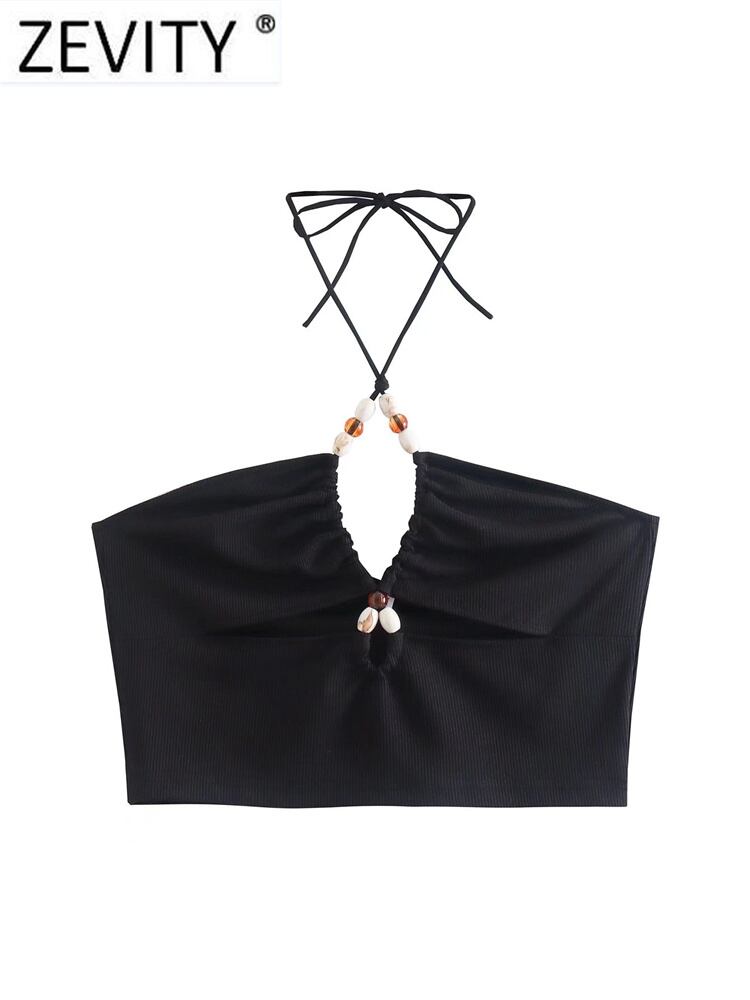 女性ストリートセクシーな中空アウトビーズホルターニットシックなキャミソールタンク女性背中の開いた Y2K クロップトップス LS1231
