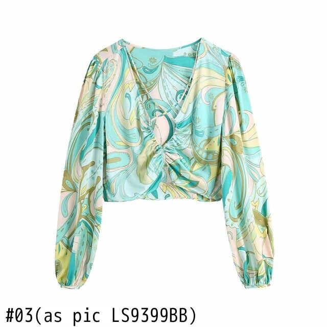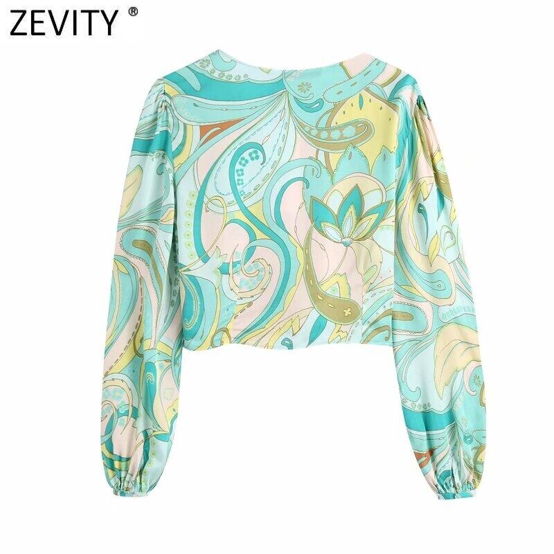 女性トーテム花柄ショートシャツ女性 V ネックフロントホールプリーツブラウス Roupas シックなスリムクロップ Blusa トップス LS9399 トートバッグ Vネック