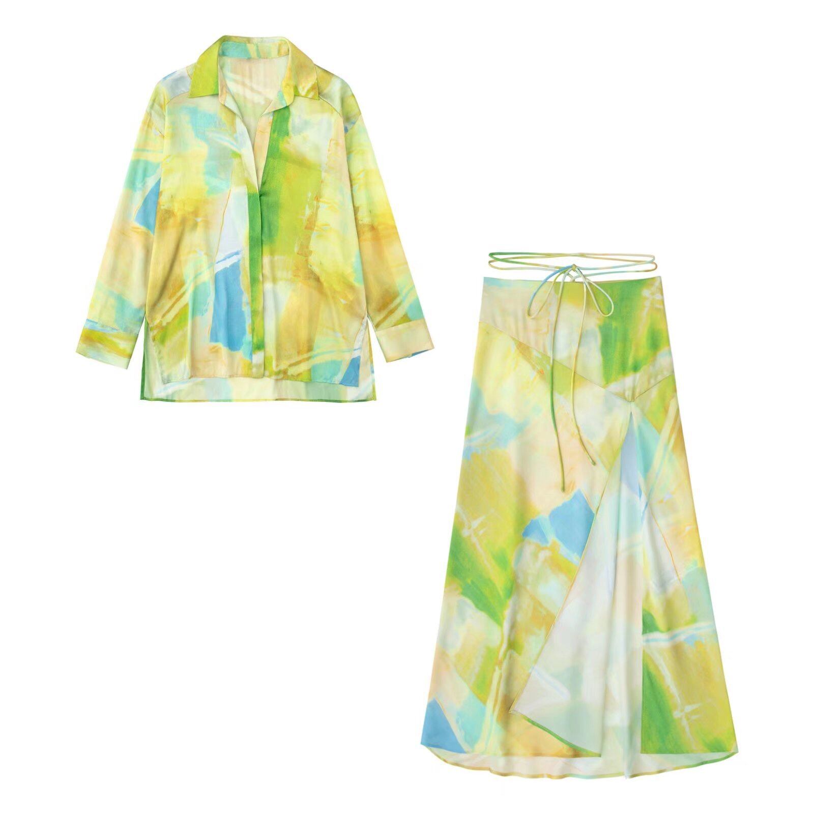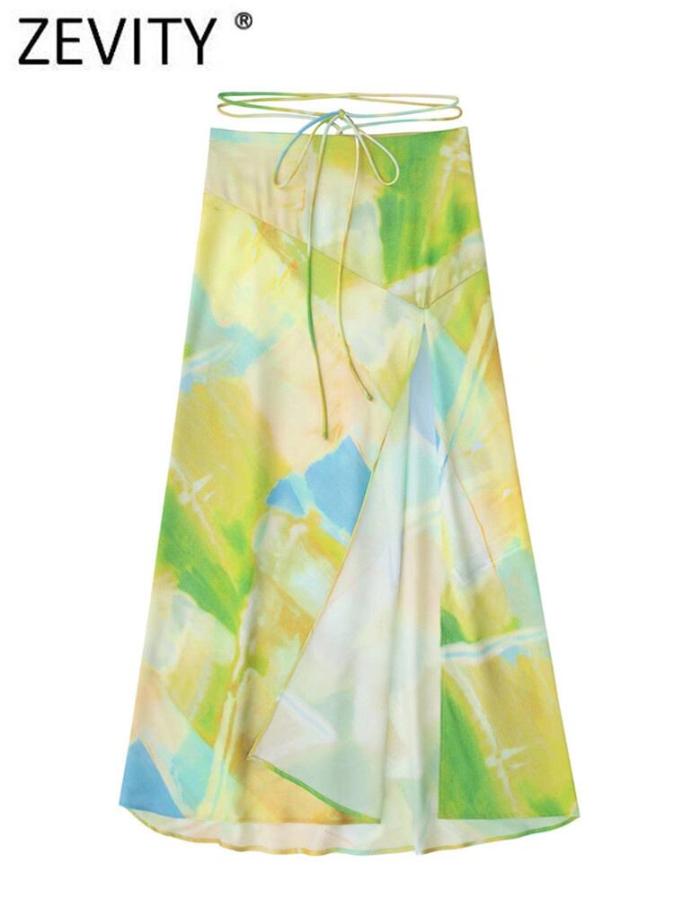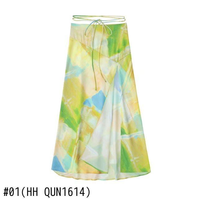 女性タイダイ印刷レースアップスプリット A ラインミディスカート段 Faldas サイドジッパー夏 Vestidos QUN1614 サマー 夏物 Aライン
