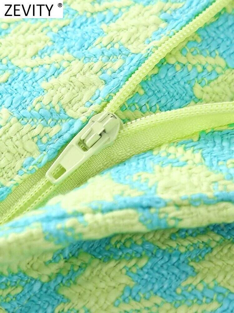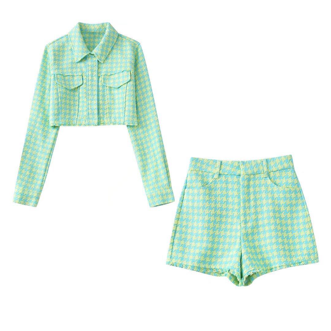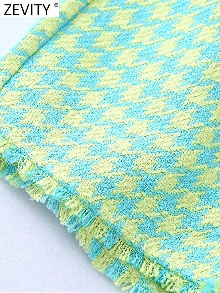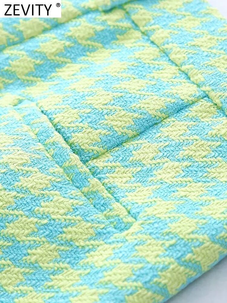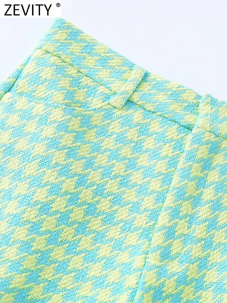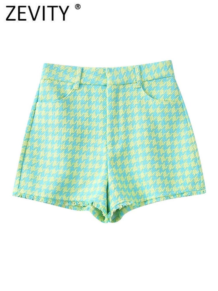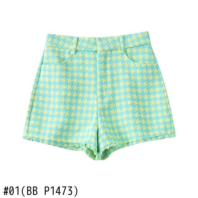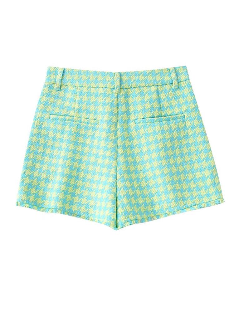 女性千鳥格子柄プリント ツイード テクスチャ ショーツ シックなレトロ ジッパー フライ ポケット パンタロン Cortos P1473 ブルマー