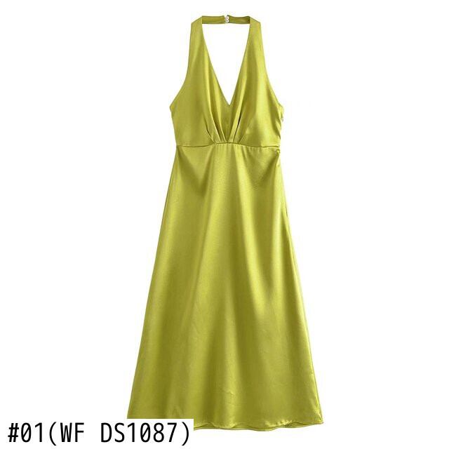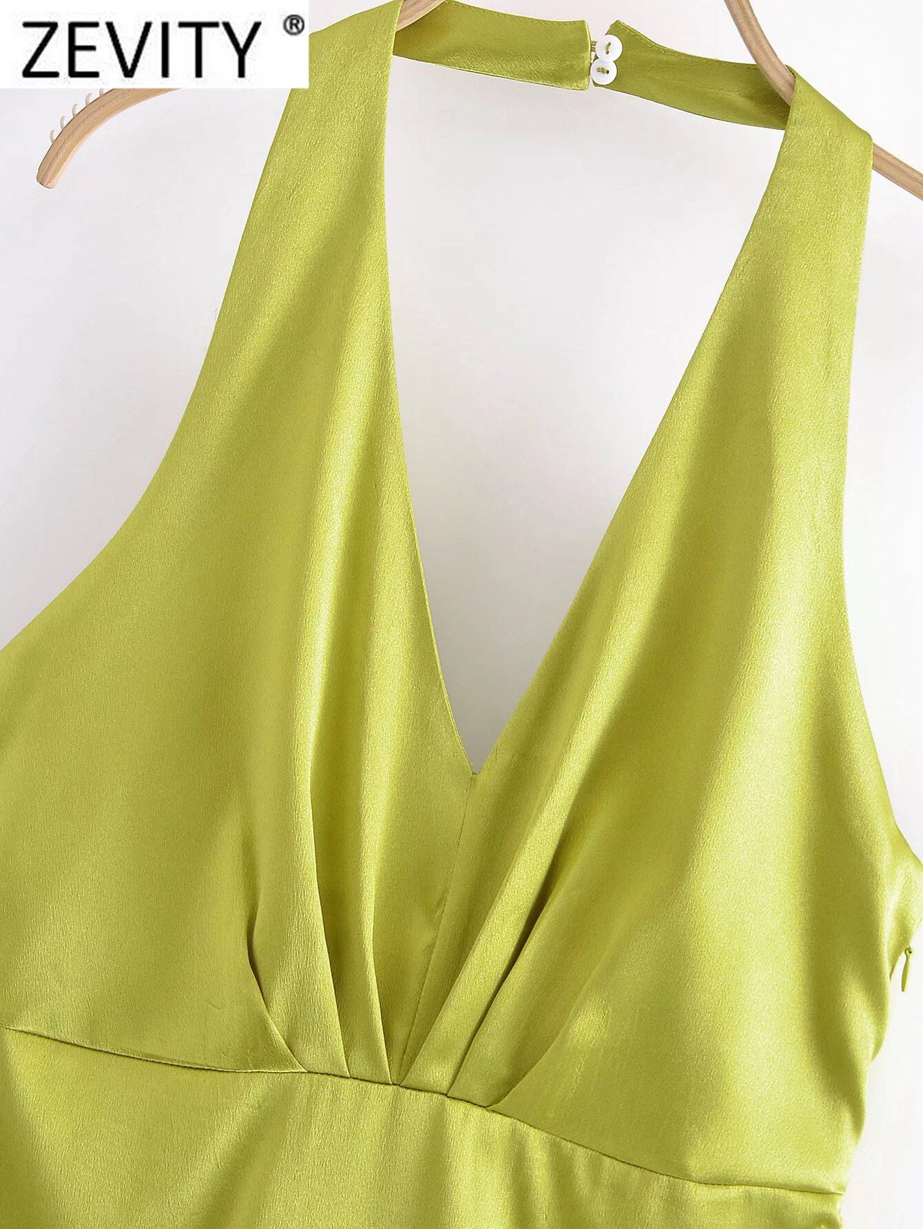 女性のセクシーなソフトタッチプリーツホルターミディドレスシックなサイドジッパーバックレススリムパーティー Vestidos DS1087