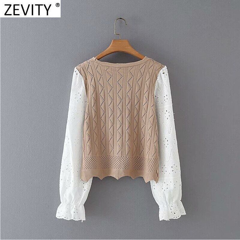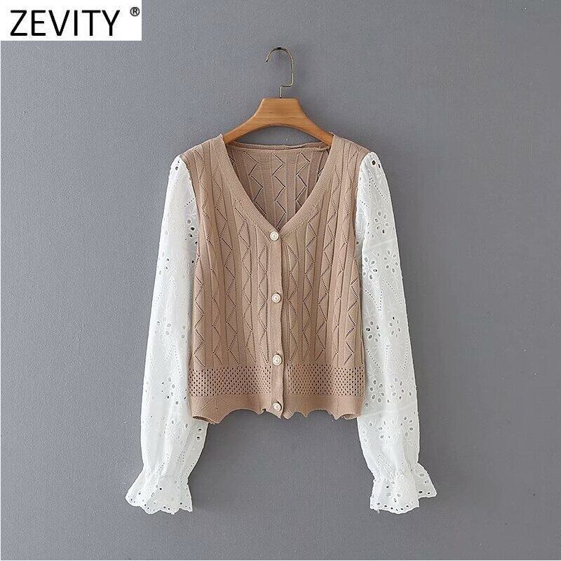 2021 女性の V ネック中空アウト長袖パッチワークニットセーター女性の基本的なカーディガンシックな裾波トップス S629 ロング Vネック