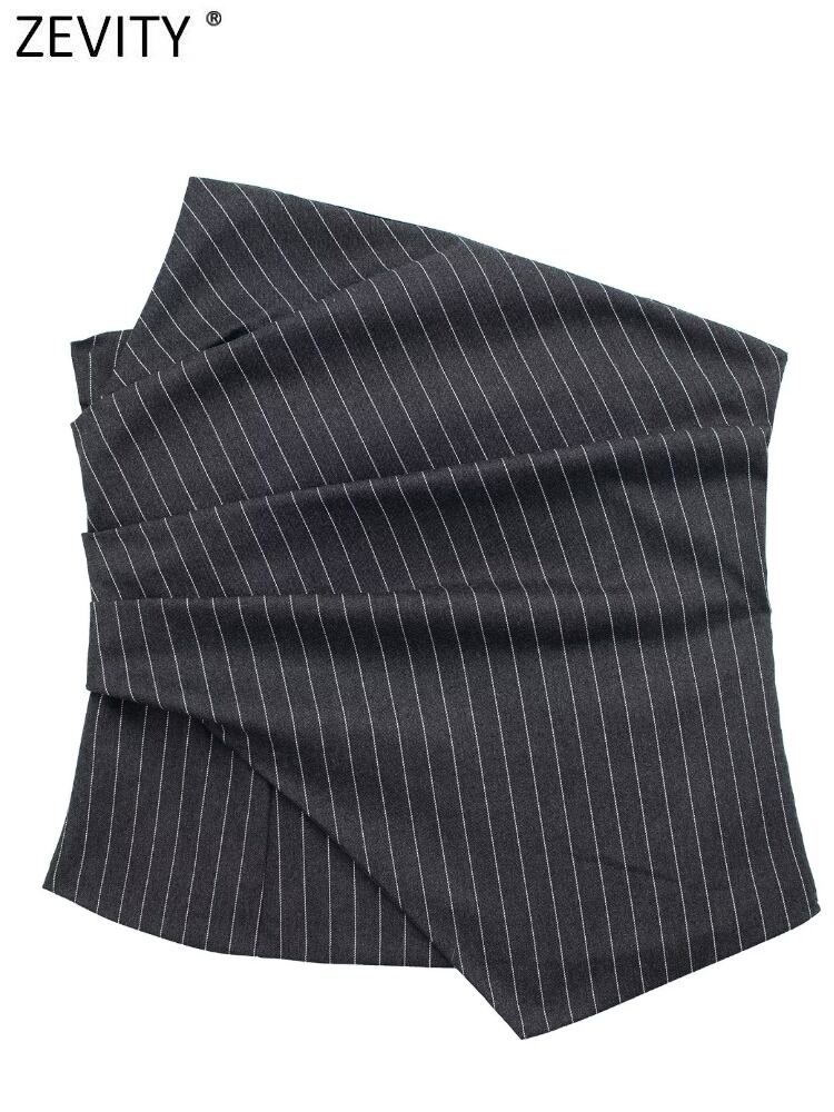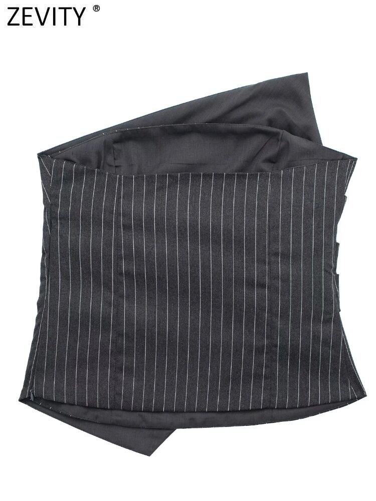 女性ストリートストラップレスストライププリント非対称ブラウス女性シックなサイドジッパー Y2K チューブシャツクロップスリムトップス LS3081