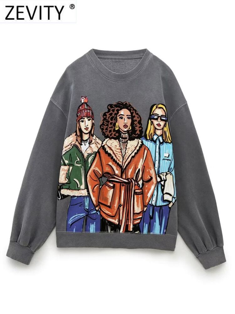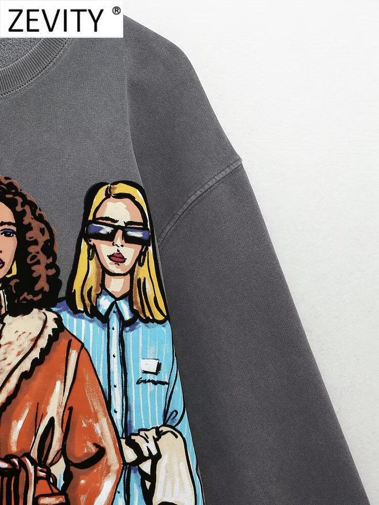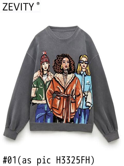 レディースプリント柄スウェット ベーシックルーズプルオーバー トップス シャツ パーカー Oネック Amy23781828372